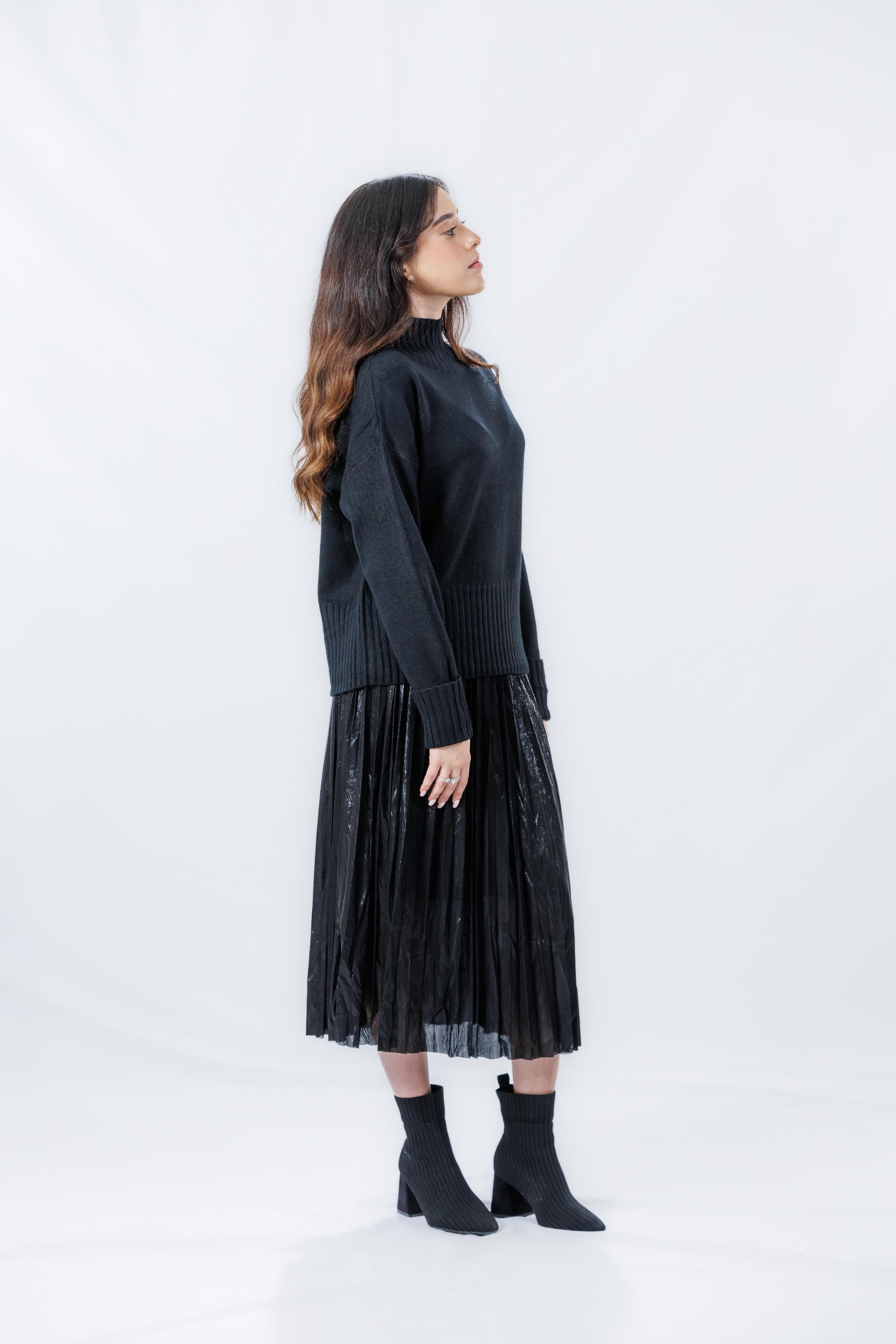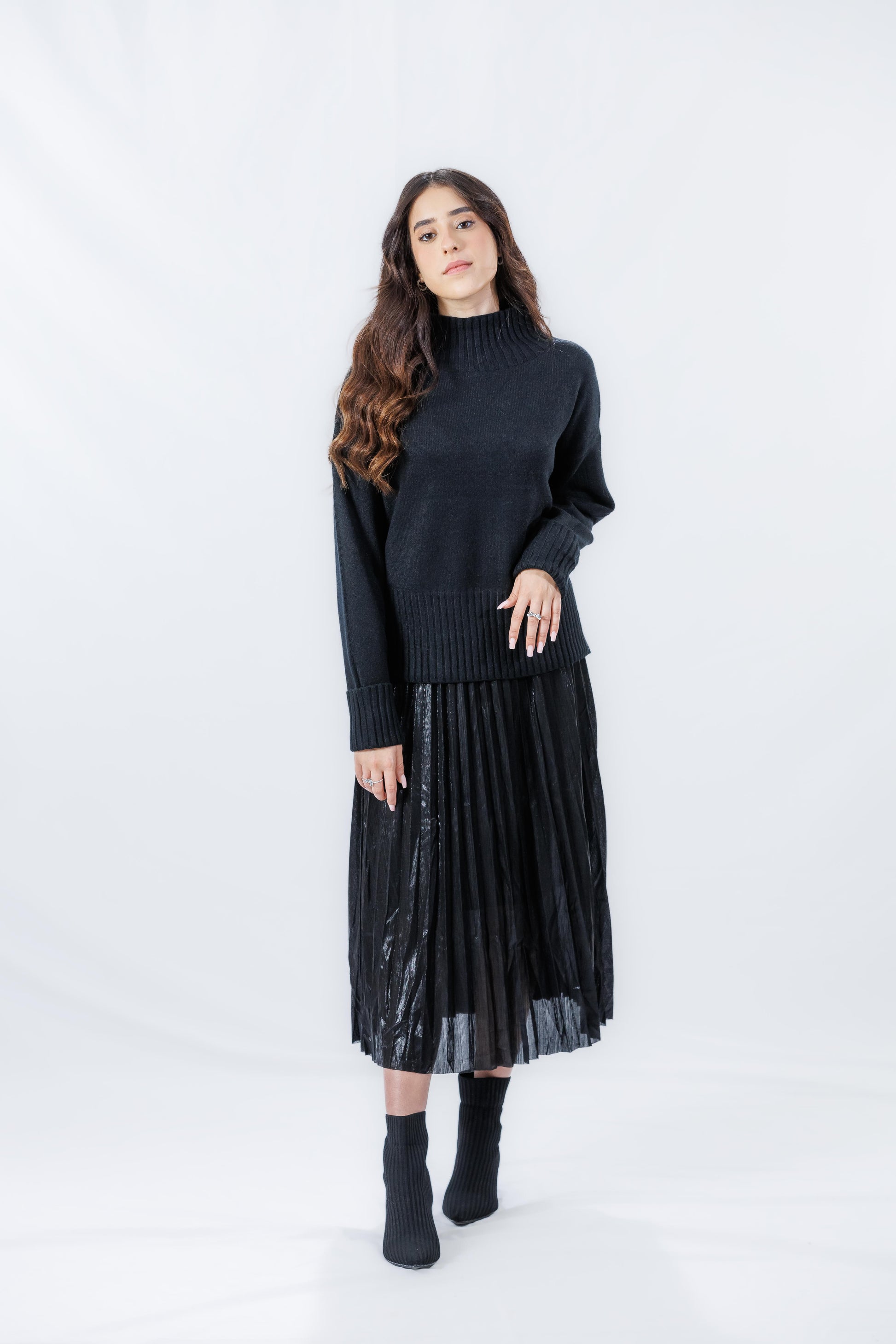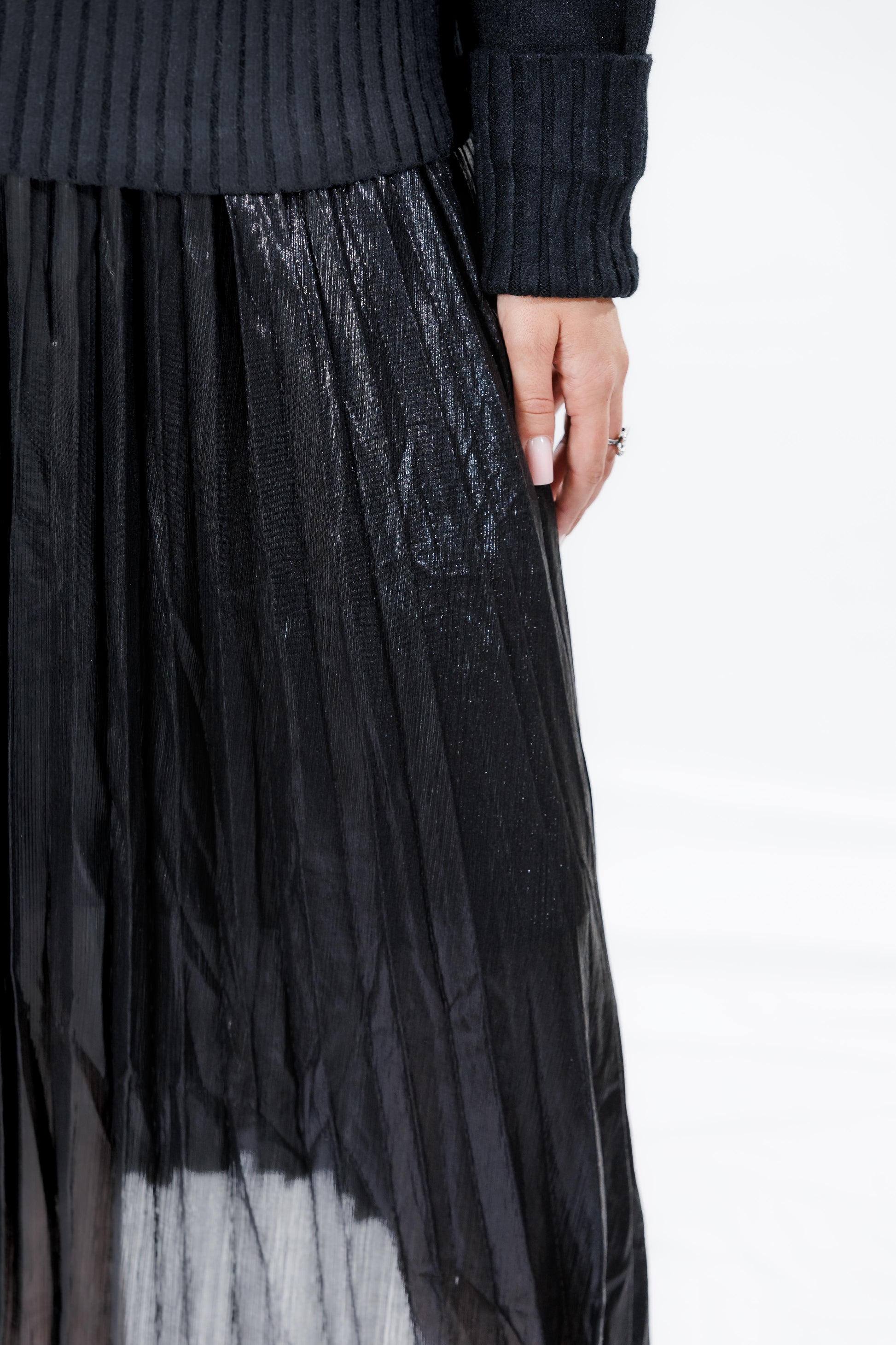 חצאית ״אורין״, חצאית פליסה מבד יוקרתי ומיוחד, באורך מידי, הבד הייחודי שלה מעניק תחושת זוהר וסטייל, ומקפיץ כל לוק. החצאית מתאימה למגוון אירועים, מהיום-יום ועד לערבים מיוחדים, והגזרה המחמיאה שלה מדגישה את הקימורים. פריט חובה בארון של כל אישה שמחפשת להרגיש מיוחדת!”