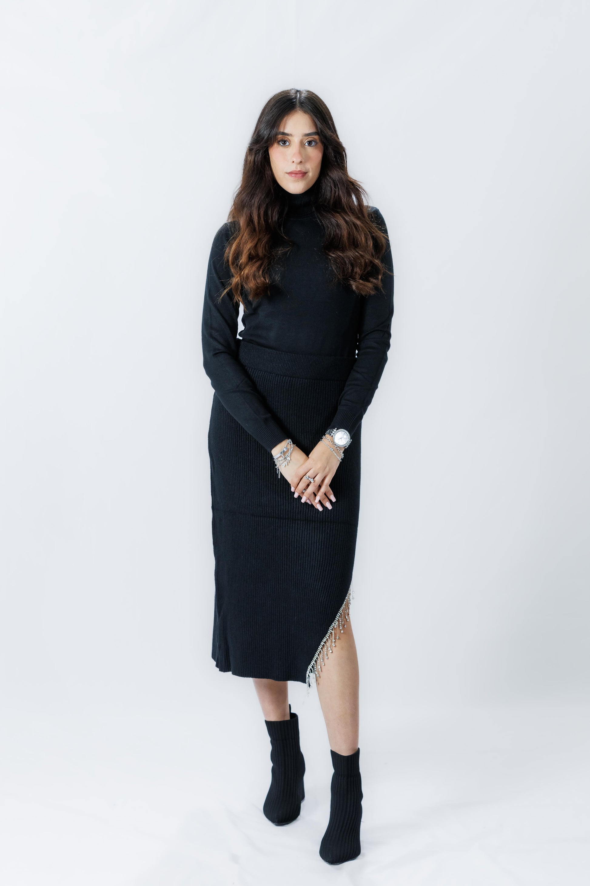 חצאית “מלי” היא חצאית סריג באורך מידי היא הבחירה המושלמת למראה מחמיא ואלגנטי. החצאית צמודה, מעוצבת בגזרה מדויקת שמדגישה את הקימורים, וכוללת פס אבנים אלכסוני שמוסיף נגיעה של זוהר ויוקרה. מושלמת לשילוב עם טופים שונים, ללוק מתוחכם ומיוחד שמתאים לכל אירוע.