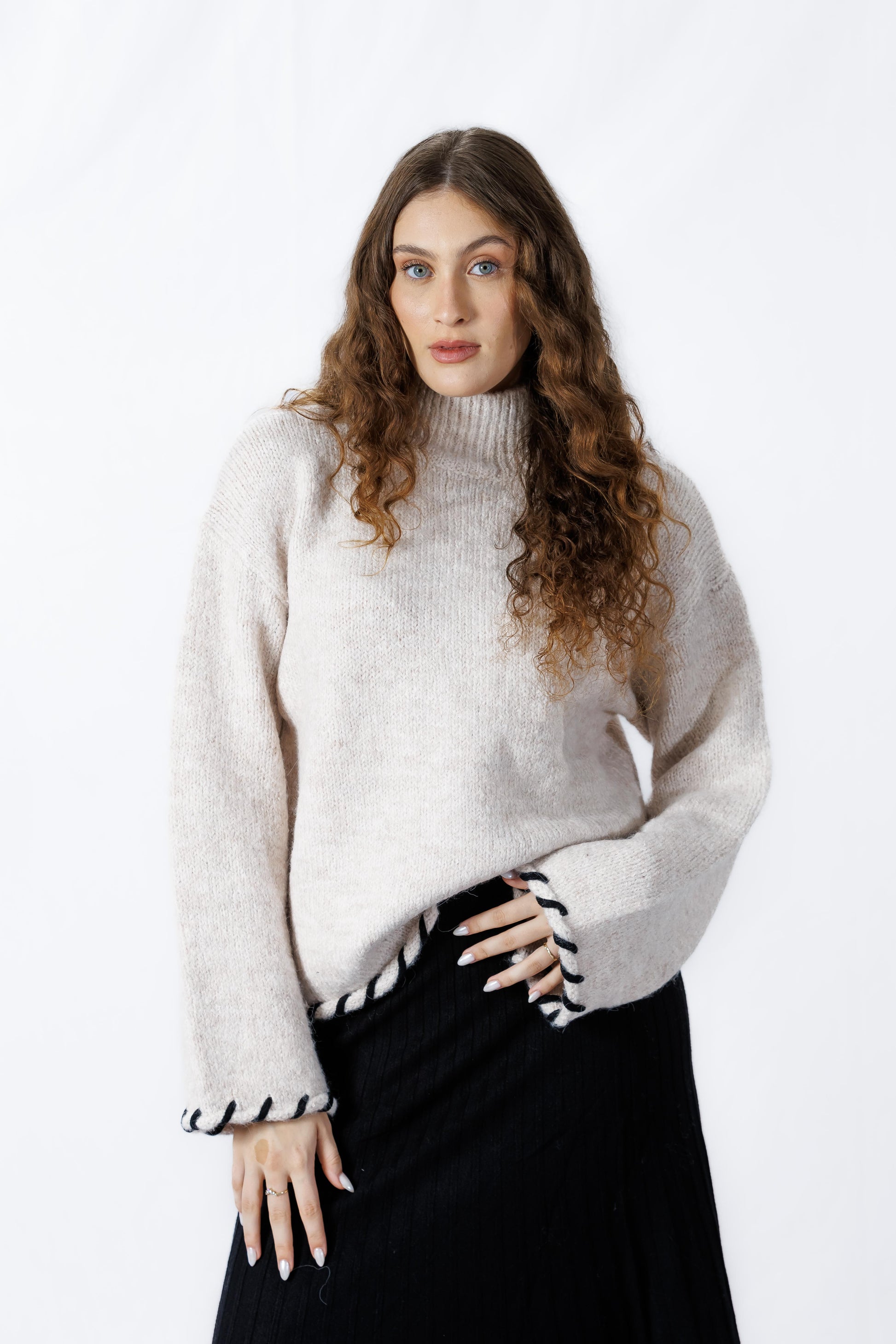חולצת שני היא סריג אוברסייז מושלמת לימים קרירים! החולצה עשויה מבד נעים ורך.