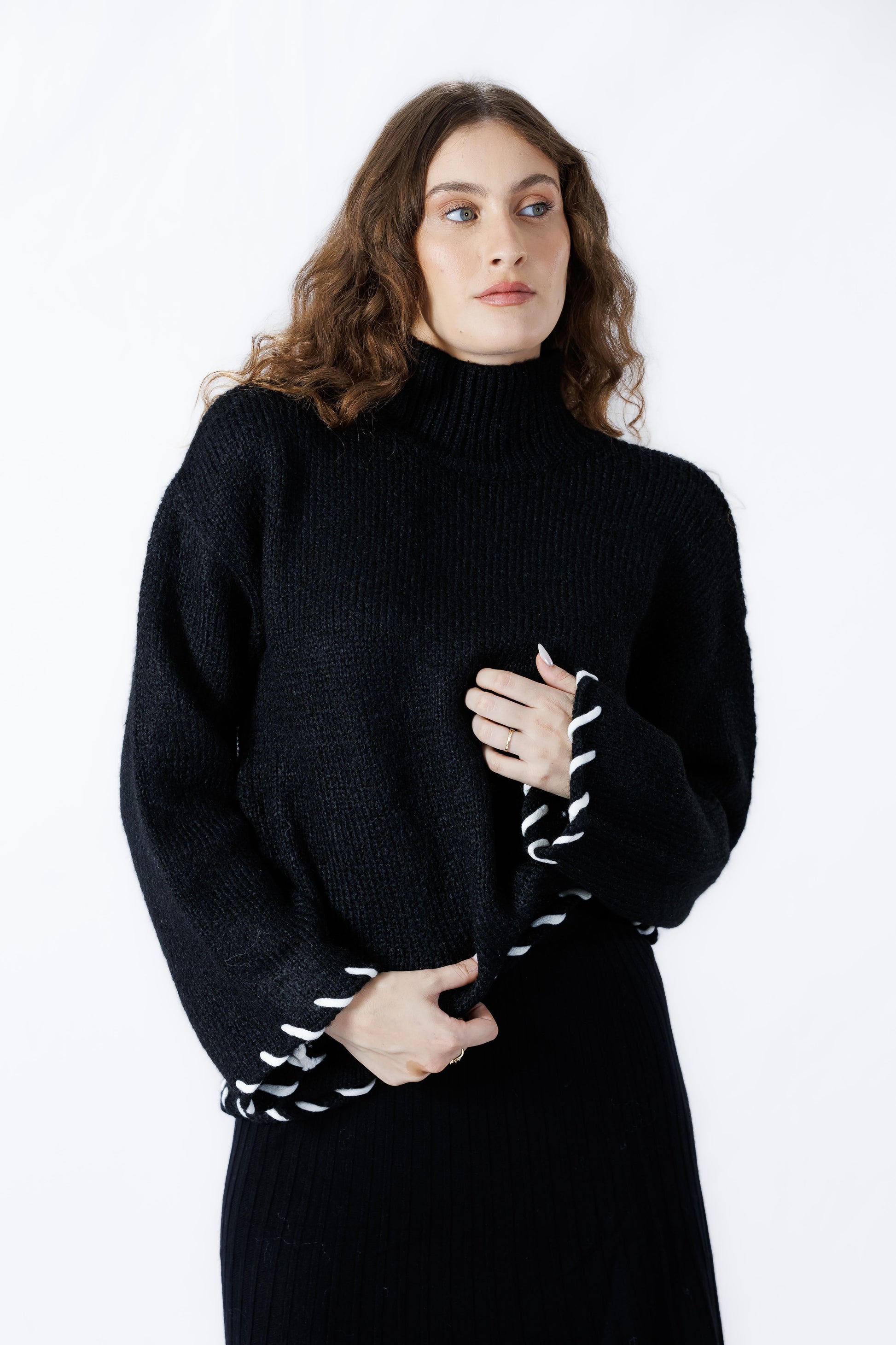 היא מעוטרת בחוט שחור עבה שמוסיף טאץ’ ייחודי בקו התחתון ובקצוות השרוולים. החולצה נוחה ורחבה, ותתאים לכל הופעה יומיומית, בין אם לג’ינס או לחצאית, ותעניק לך מראה טרנדי ומשוחרר. מגיעה במגוון צבעים!